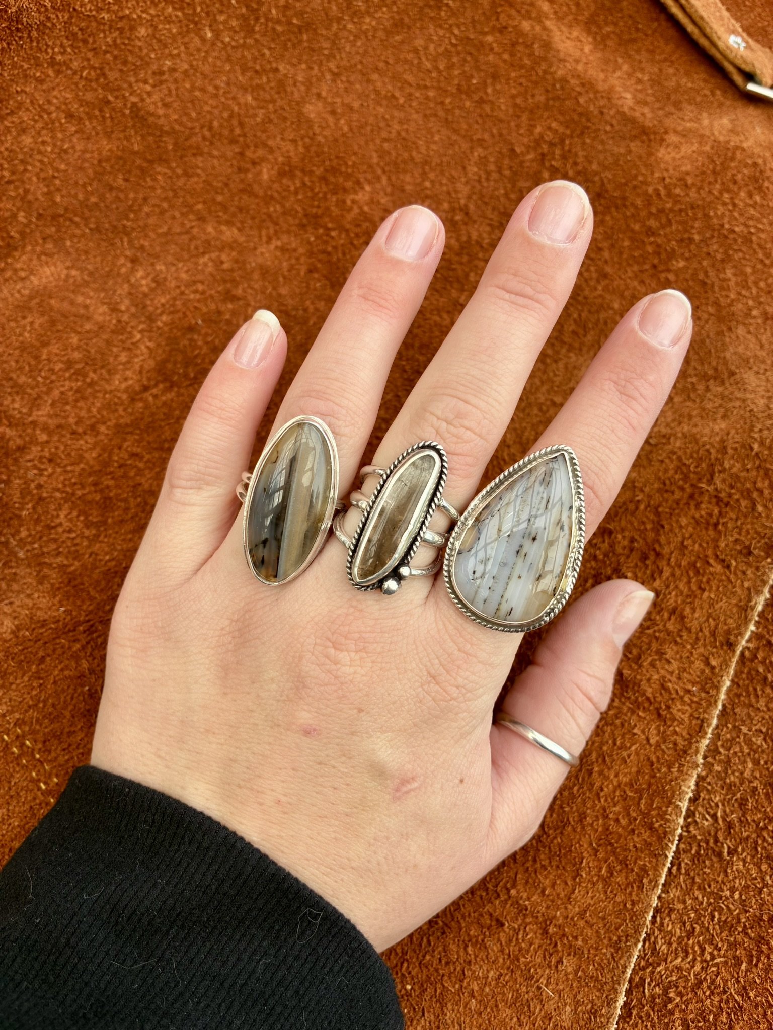 Sterling silver and copper jewelry crafted by one artist in a small studio in western Montana, featuring an array of stones including genuine turquoise and Montana agate from the Yellowstone River. Custom orders are open and encouraged: this includes elk ivory jewelry. Please check out the Shop page for ready to ship pieces.